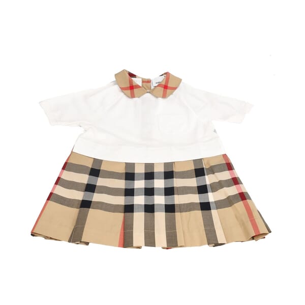 Cotton Check Girls Dress Beige/White