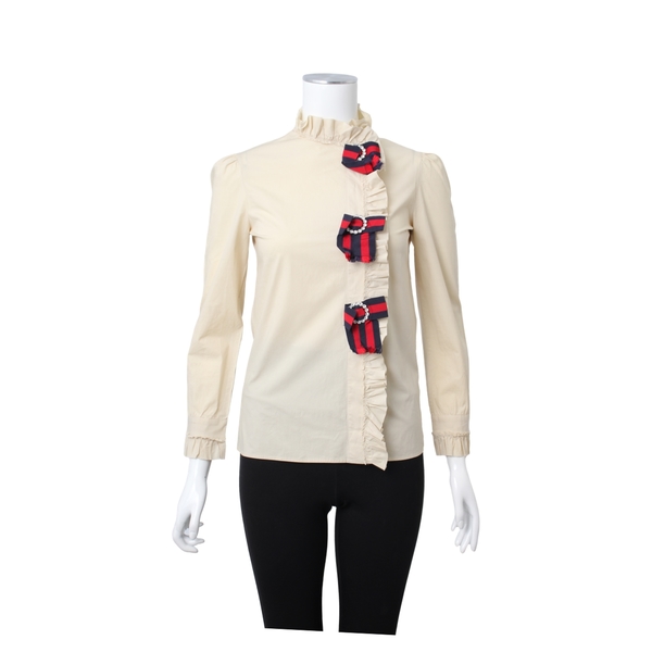 Cotton Embellished Mock Neck Blouse Beige