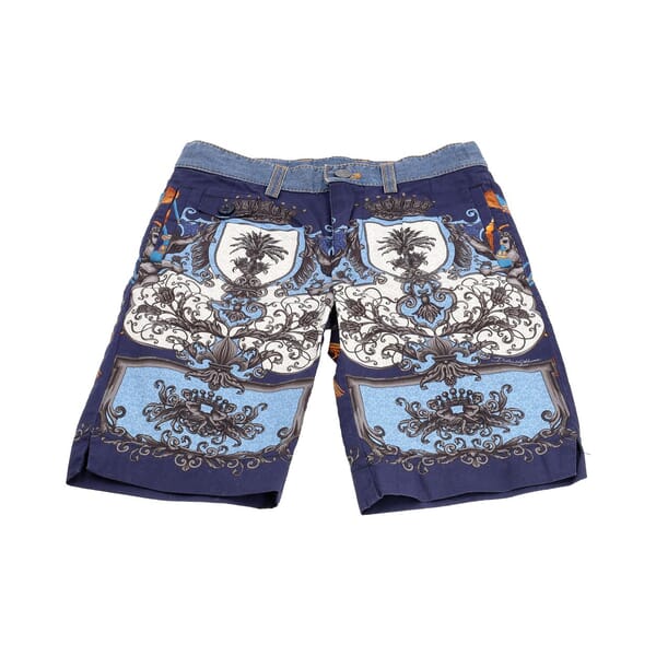 Kids Cotton Baroque-Print Shorts Blue