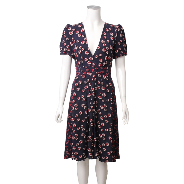 Silk Beach Ball/Heart Printed Short-Sleeve Midi Dress Navy