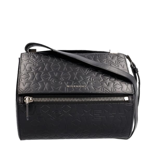 Embossed Leather Medium Pandora Box Bag Black