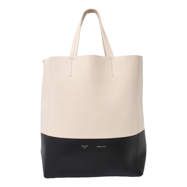 Leather Vertical Cabas Small Tote White/Black