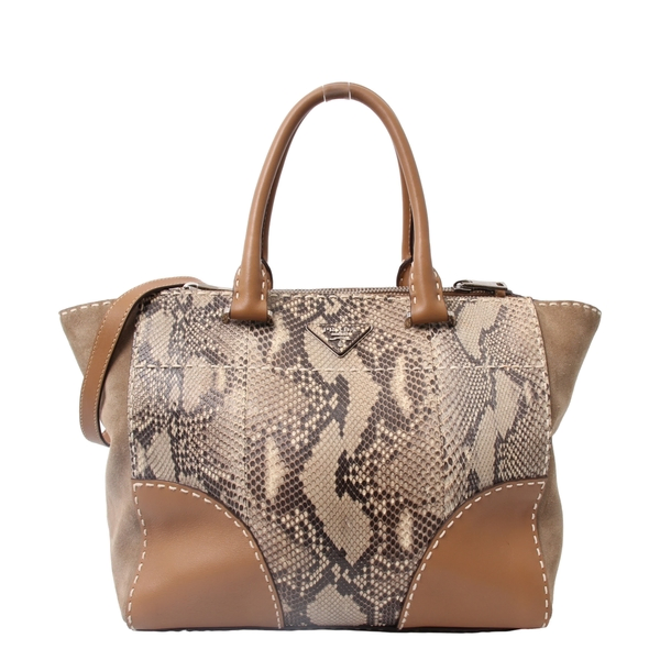 Mixed Material Medium Double Zip Tote Beige