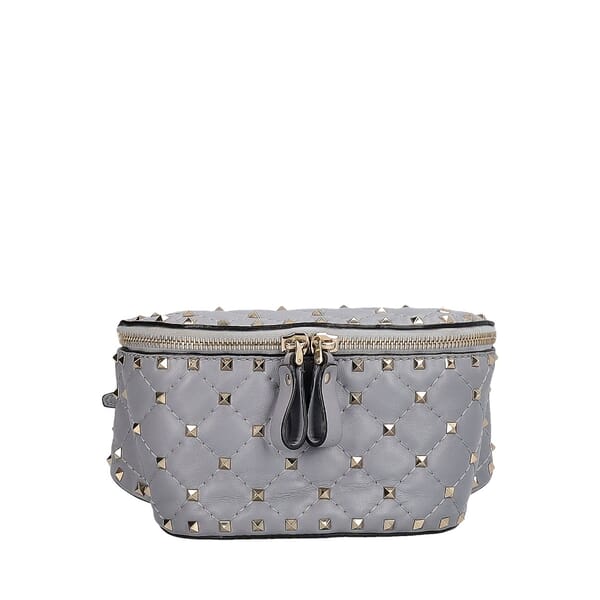 Leather Rockstud Spike Belt Bag Grey
