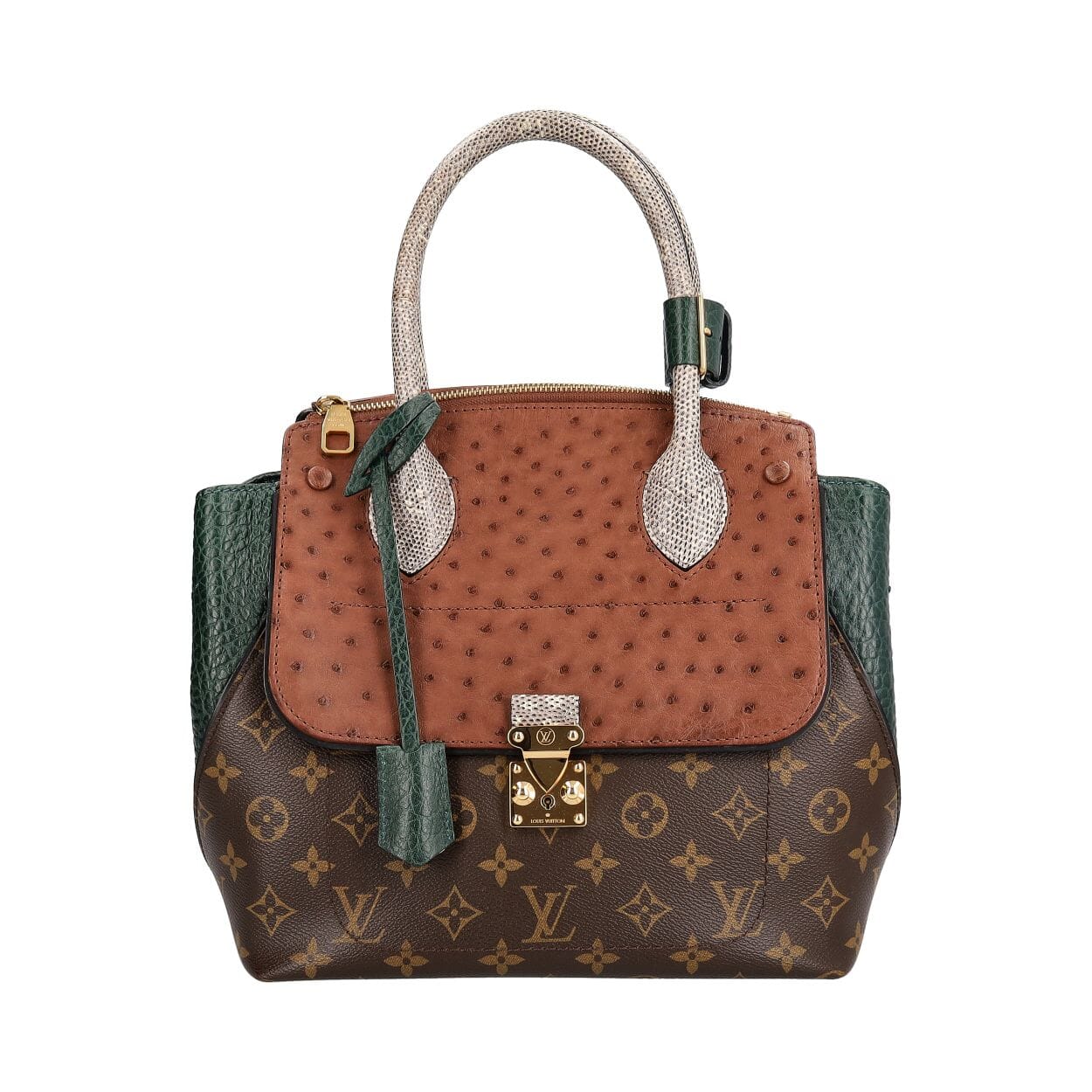 Leather Large Phantom Luggage Tote Grey/Green