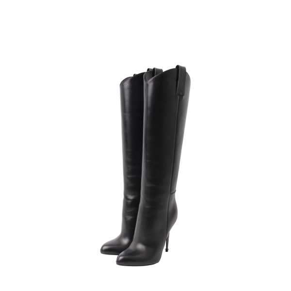 Leather High Knee Boots Black
