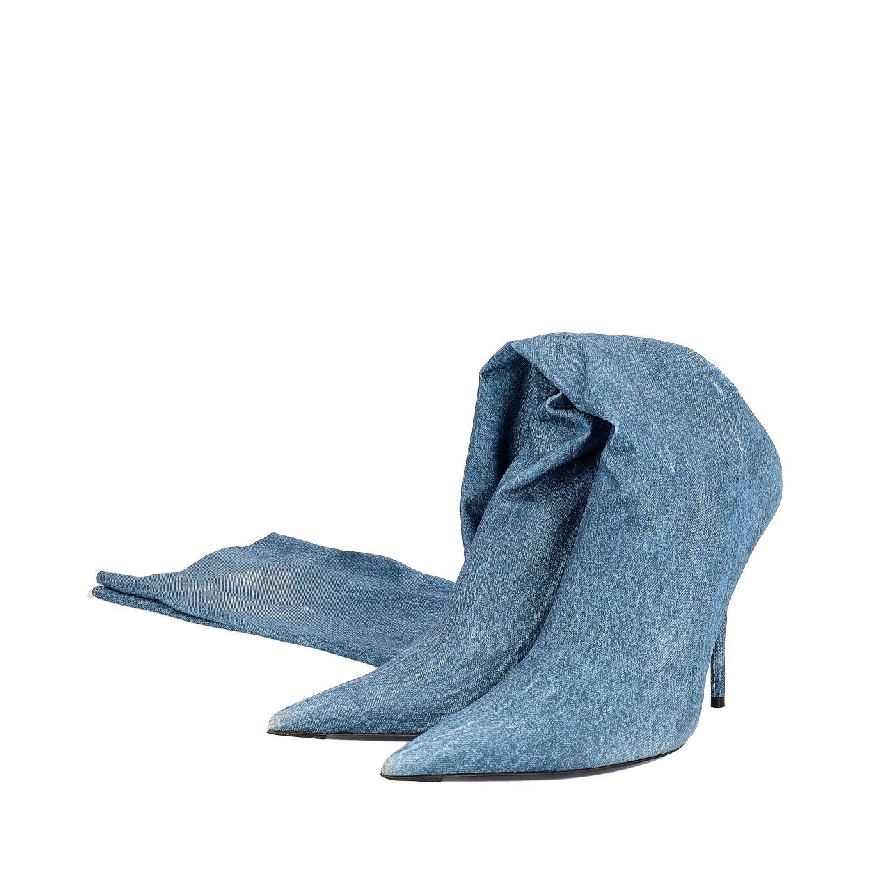 Mixed Material Folded Ankle Boots Blue/Black