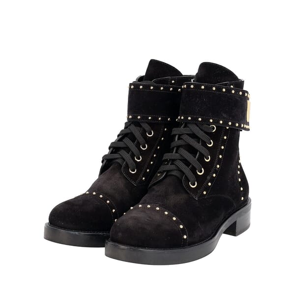 Suede Studded Combat Boots Black