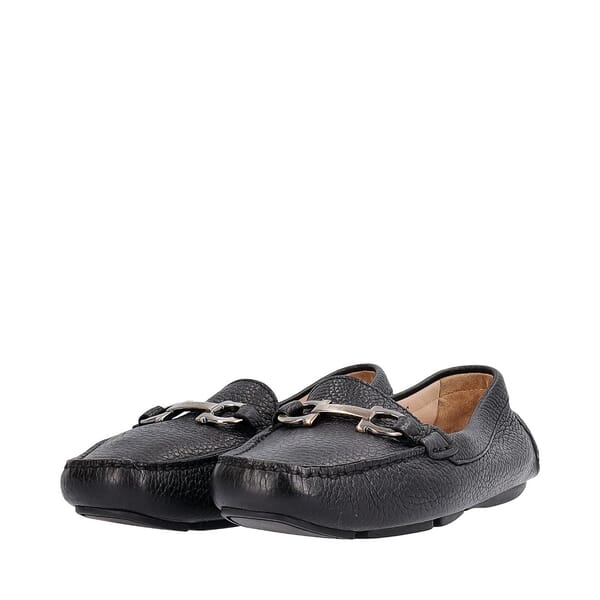 Leather Gancini Driver Loafers Black