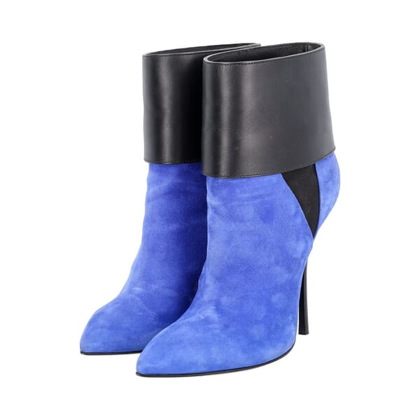 Mixed Material Folded Ankle Boots Blue/Black