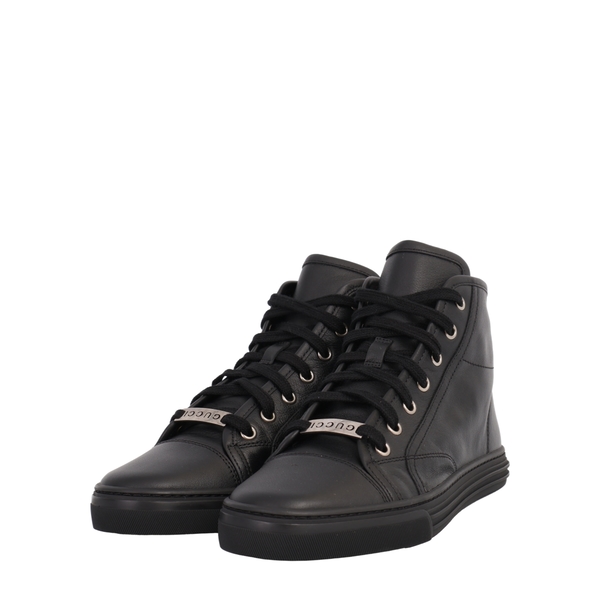 Leather High Top Sneakers Black