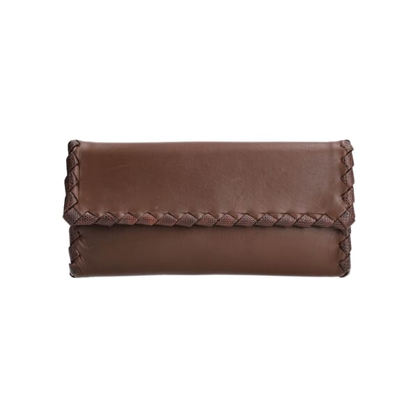 Leather Intrecciato Trim Continental Wallet Brown